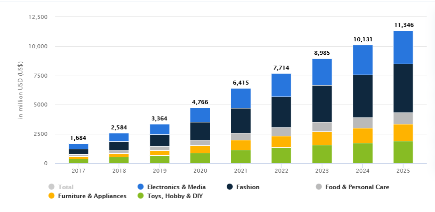 이러한 성장세는 인터넷과 스마트폰 보급률 증가, 안전한 온라인 결제 시스템의 확산, 그리고 블랙프라이데이, 싱글즈데이와 같은 온라인 쇼핑 축제의 인기에 힘입은 것입니다 .